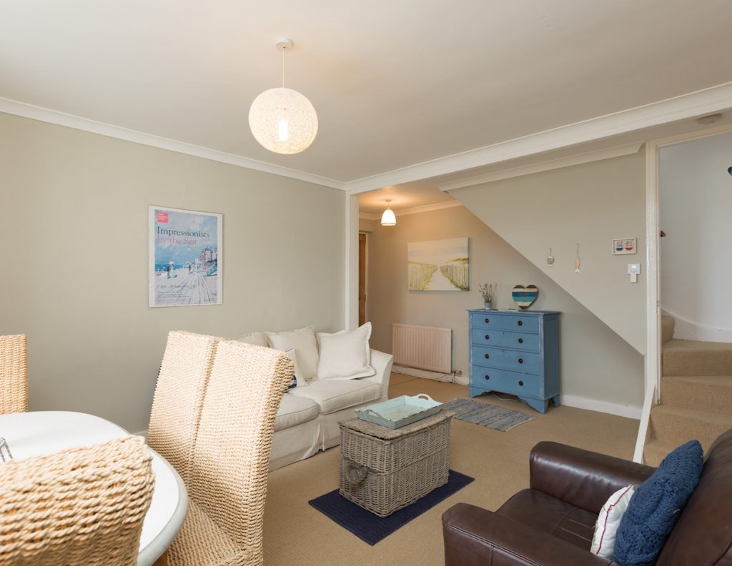 The property has accommodation for four guests with one double bedroom and one twin bedroom. Downstairs there is a snug with wood burner, sofas and television, lounge/dining room with large dining table, chairs and sofa. The kitchen to the back of the property, is fully equipped and there is a separate utility room with washing machine. There is a fridge and separate freezer. The bathroom has a full-sized bath with pressurised shower, toilet and wash basin.